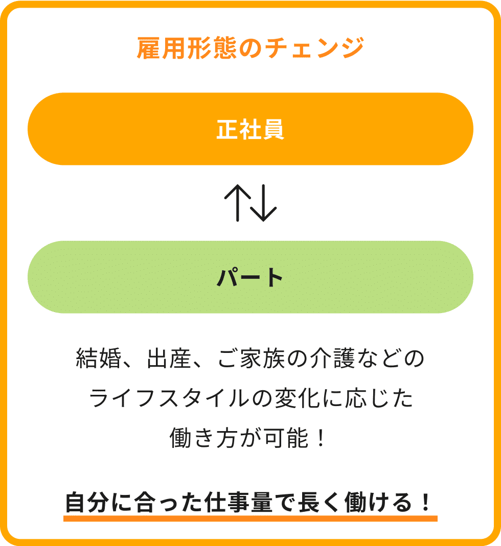 「正社員」と「パート社員」雇用形態を臨機応変に選ぶことができます。