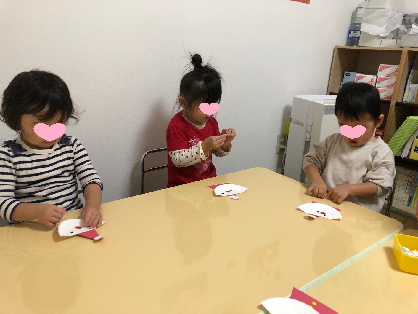 小さいシールも上手に貼れたよ。サンタさんの出来上がり~♡