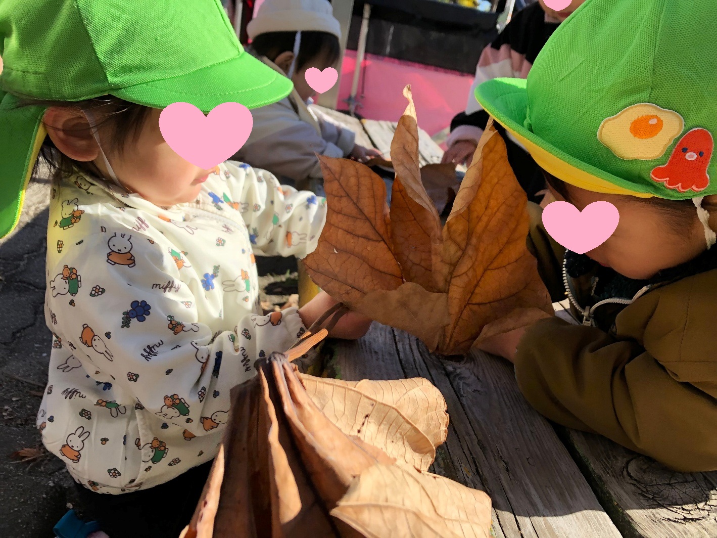 落ち葉がいっぱ~い☆ヒラヒラ~。キャー!落ち葉の雨だ~♪