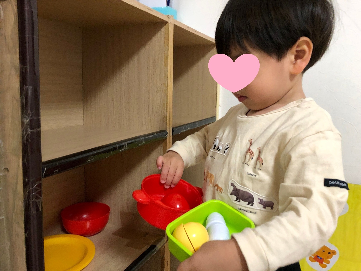 室内では、手作りの玩具が多くあり、小さな年齢の子から、少し大きい子がそれぞれに好きな遊びをじっくりと楽しめるように工夫をしています。