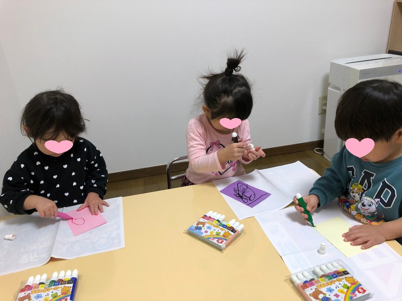 ペンで描き描き。上手でしょ!!何ができるのかな?