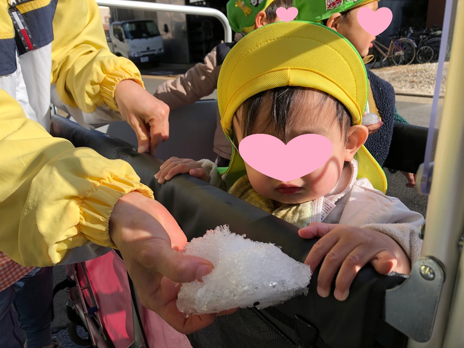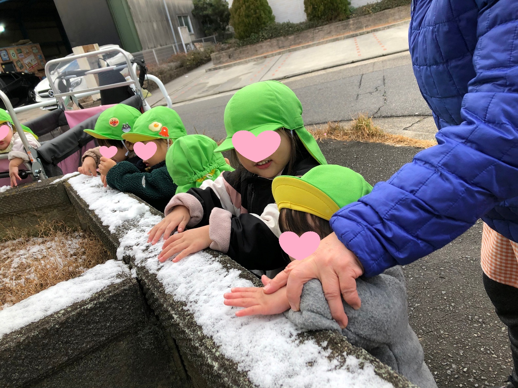 薄っすら雪が積もったよ。わ~フワフワしてるね!