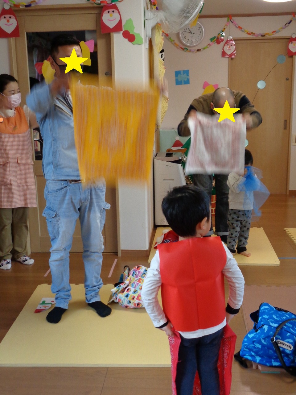 「おにはーそと!ふくはーうち!」元気なかけ声も聞こえてきました。「なんでもいやいやおに」「怒りんぼおに」などお家の人が考えてくれた