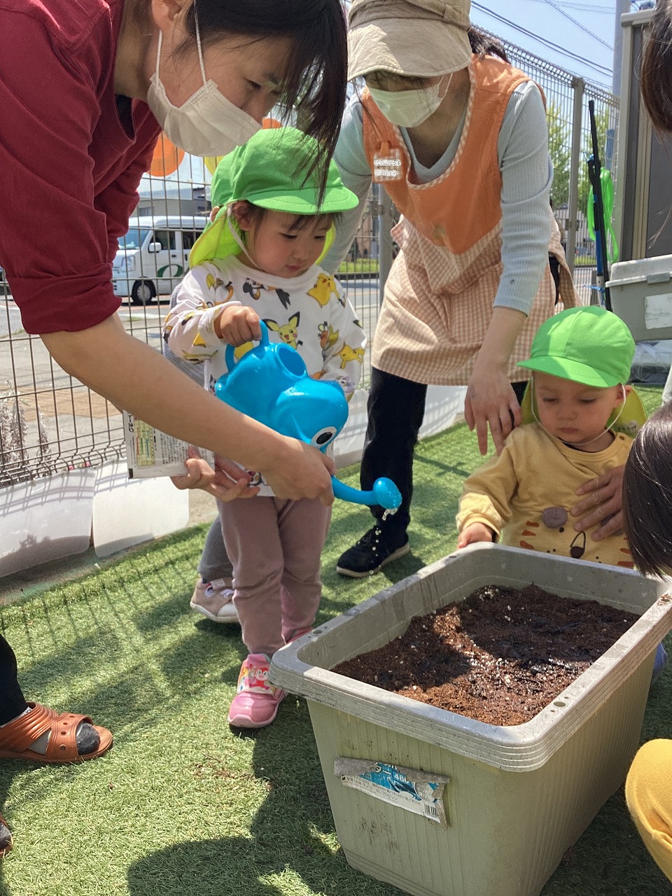 にじ組の子どもたちが食育で野菜の種、苗植えをしました。