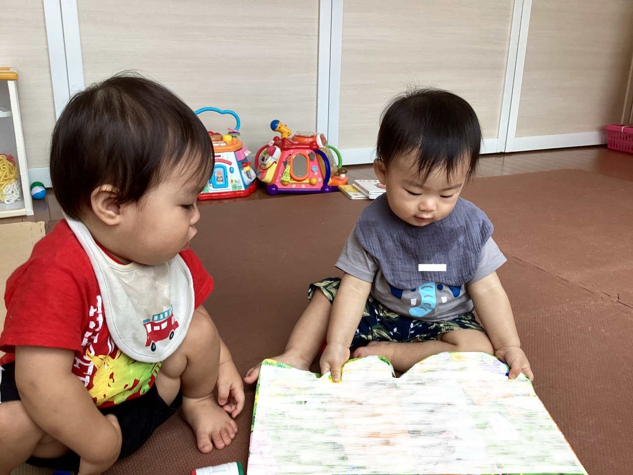 ほし組に新しいお友達が入りましたよ♪仲良く絵本を眺めていますね。