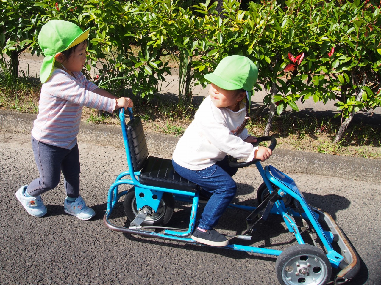 先週から今週にかけて天気の良い日が続いていますね。子どもたちもぴかぴかの笑顔でお散歩を楽しんでいます。