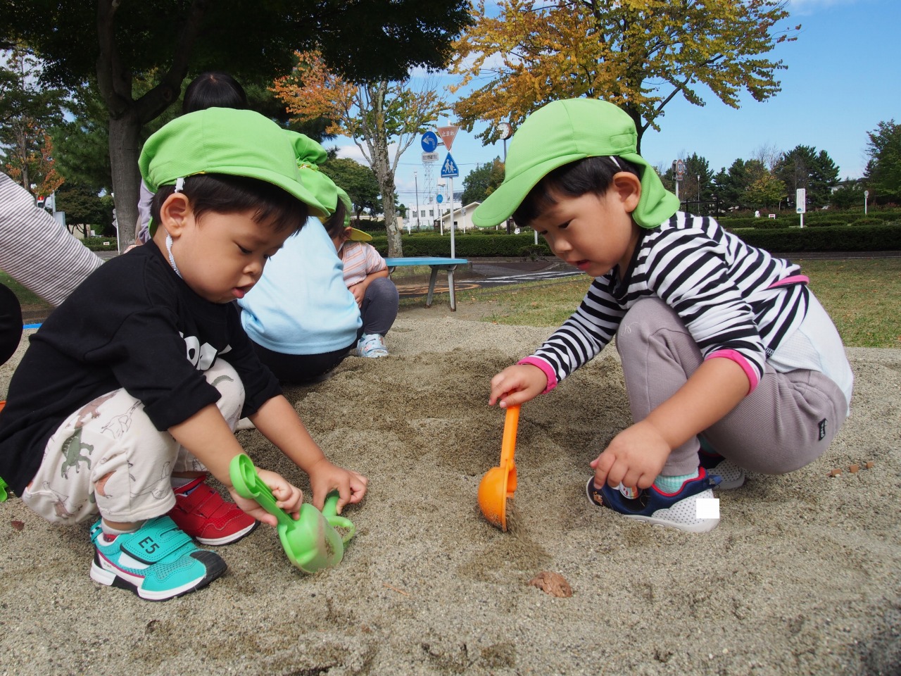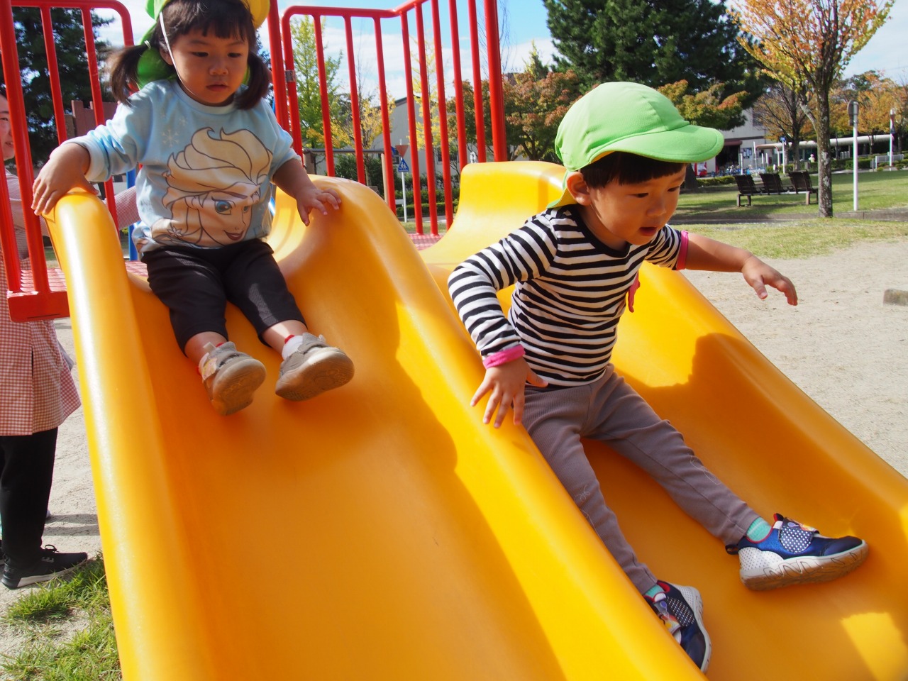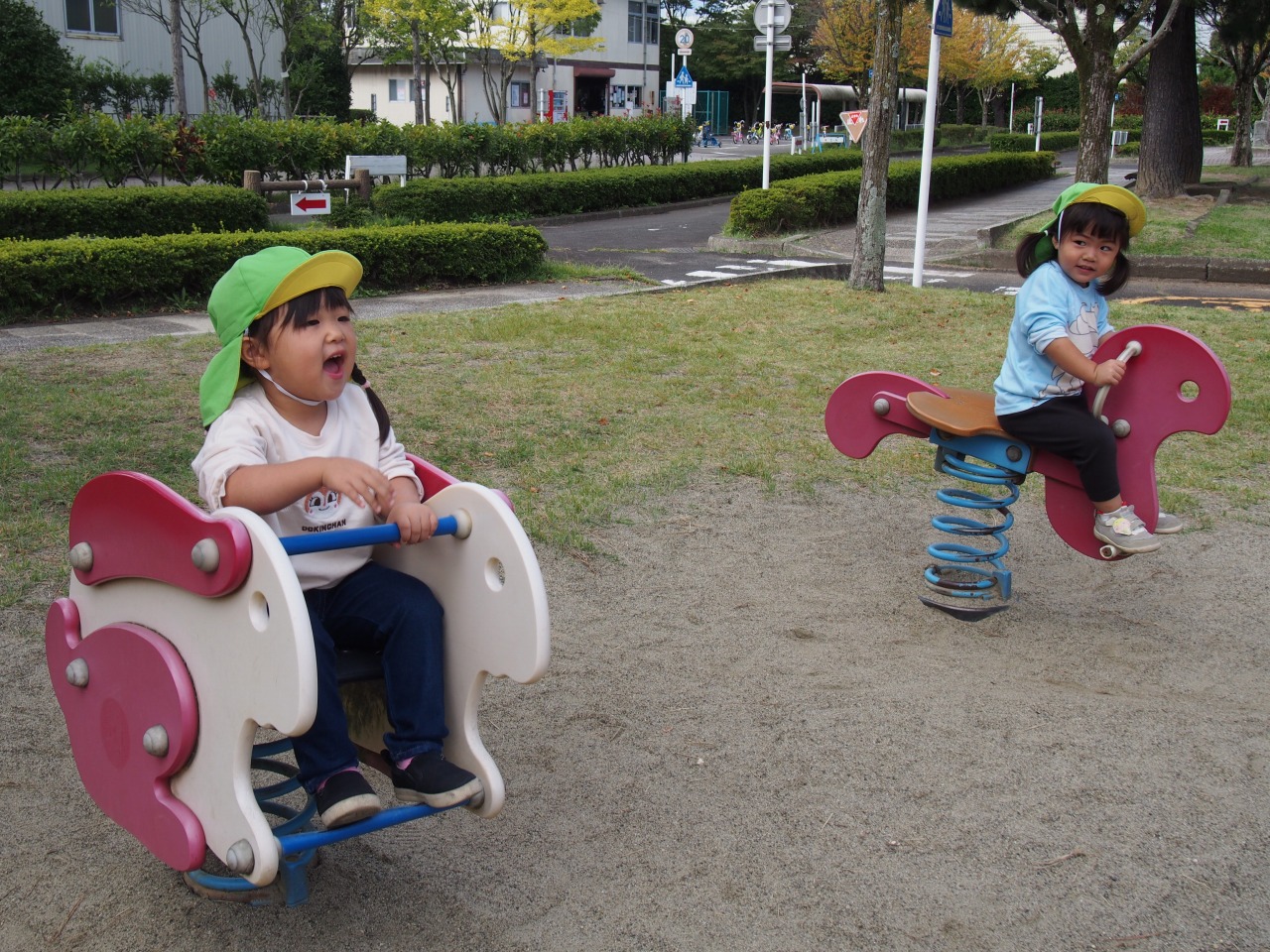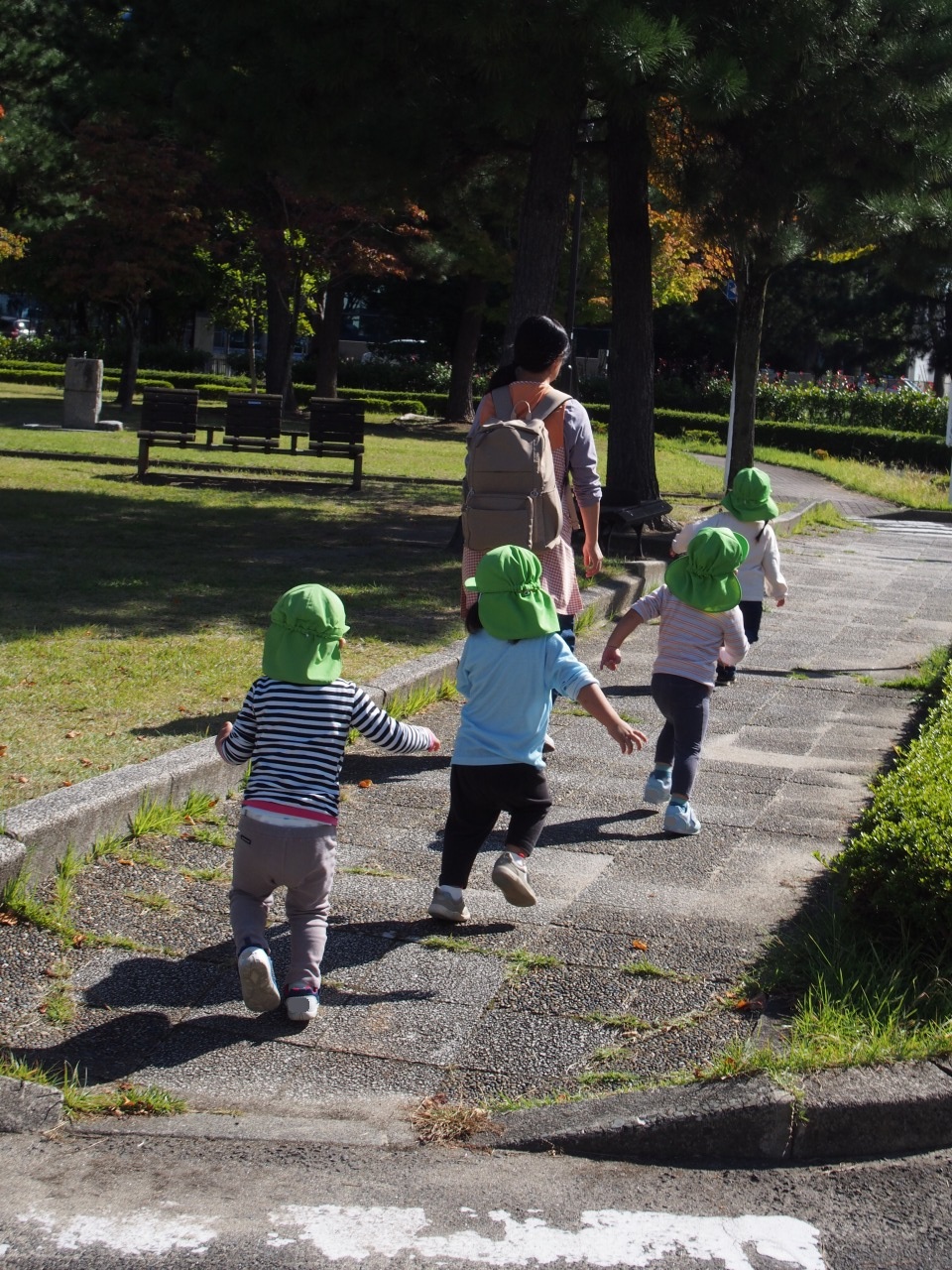 にじ組さん、秋の遠足で南小泉交通公園へ行ってきましたー!みんないいお顔です。
