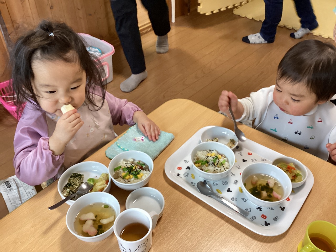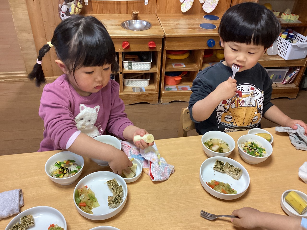 コーンやニンジンを分けてから食べる子も個性が出てます
