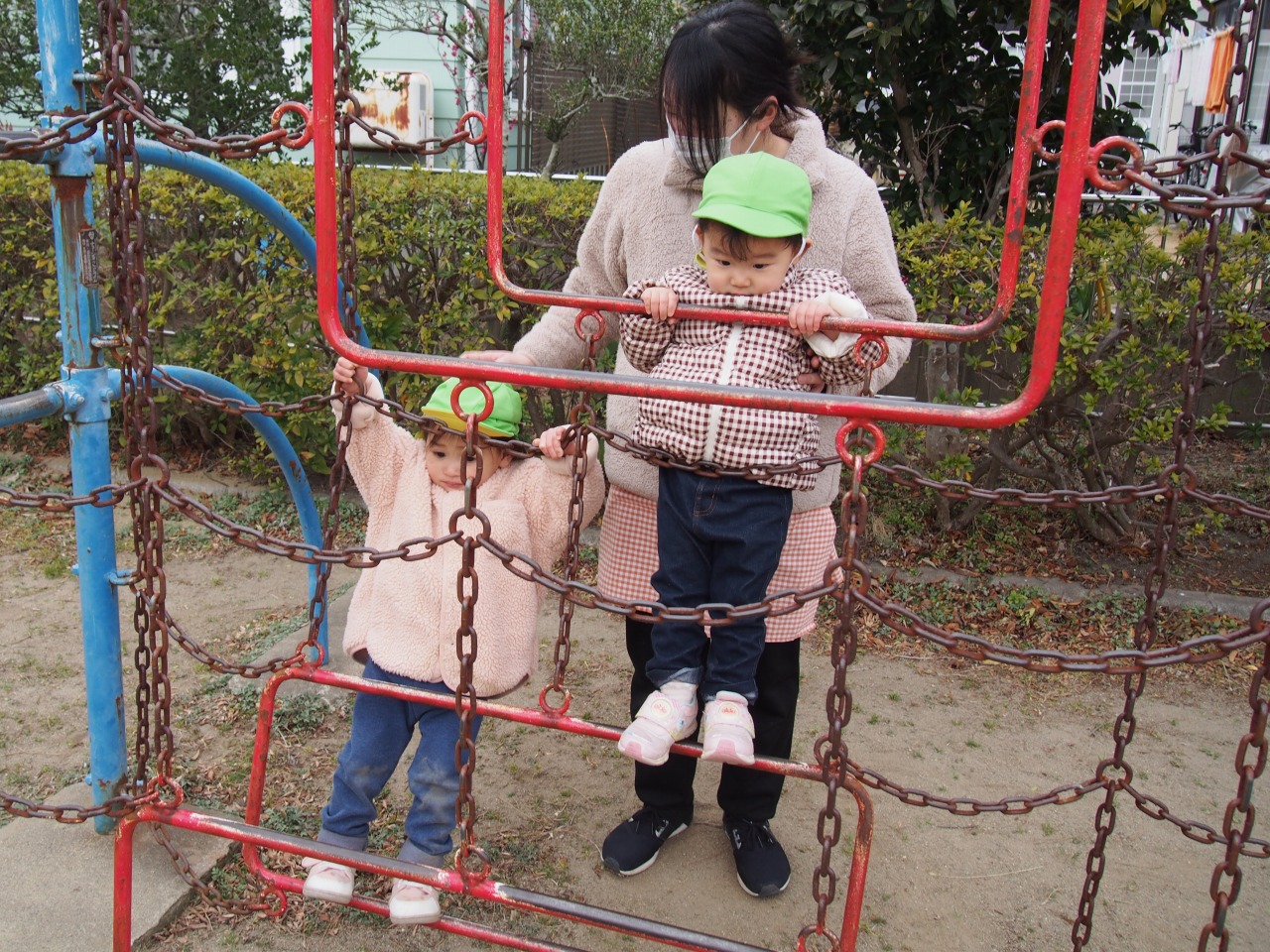 チェーン遊具。しっかりつかまってます。ユラユラ~。
