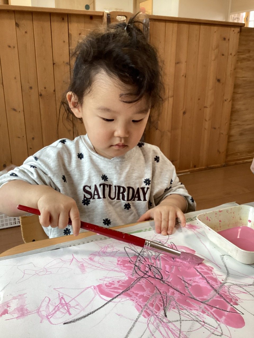そら組は筆を使って絵の具を塗りました。真剣な表情で集中して塗っていましたよ。