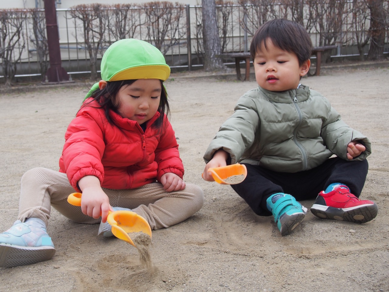 上手に出来たね。「お山作ろう」「うん」