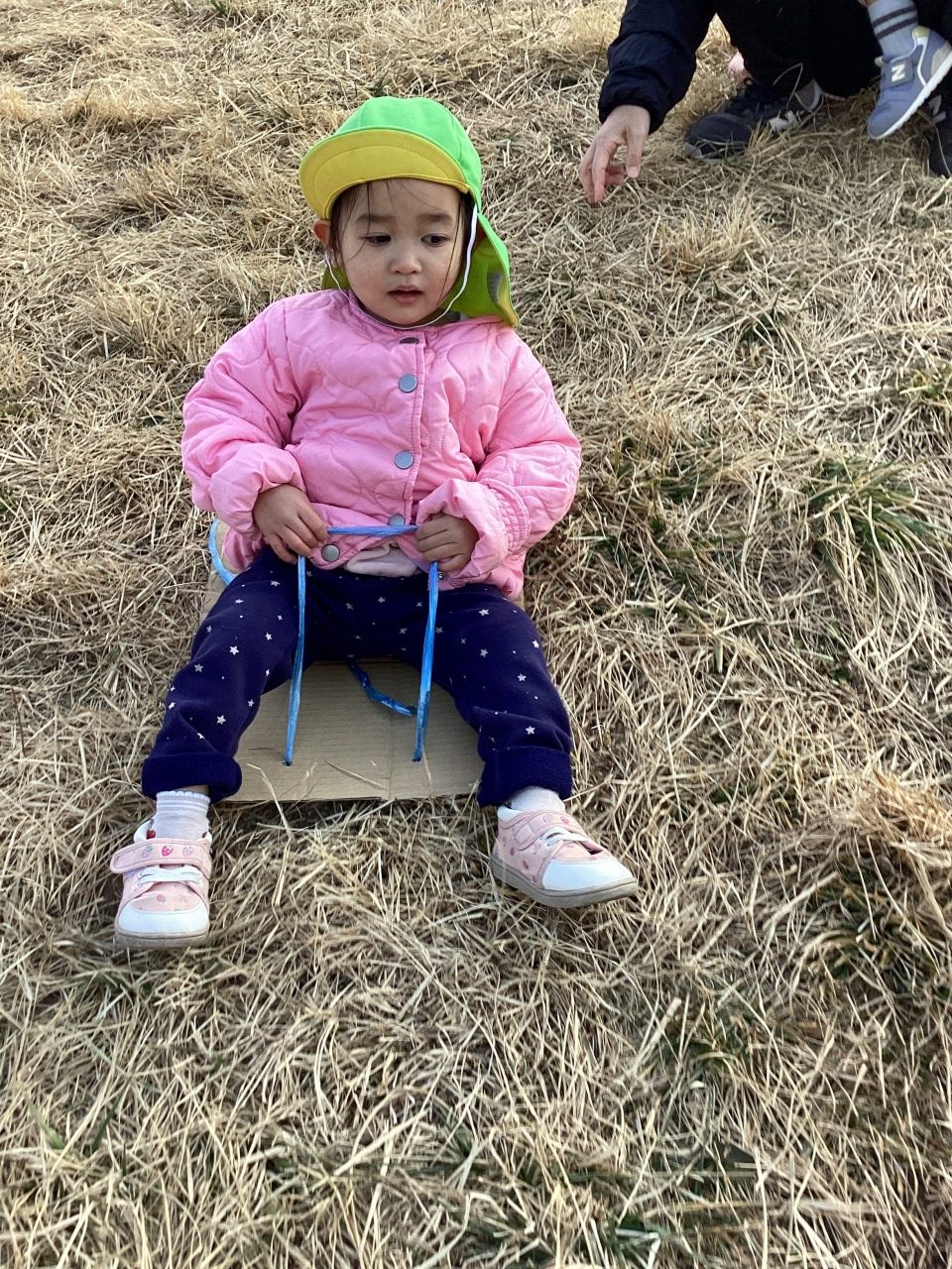 戸外遊びの様子。ダンボールのそり。