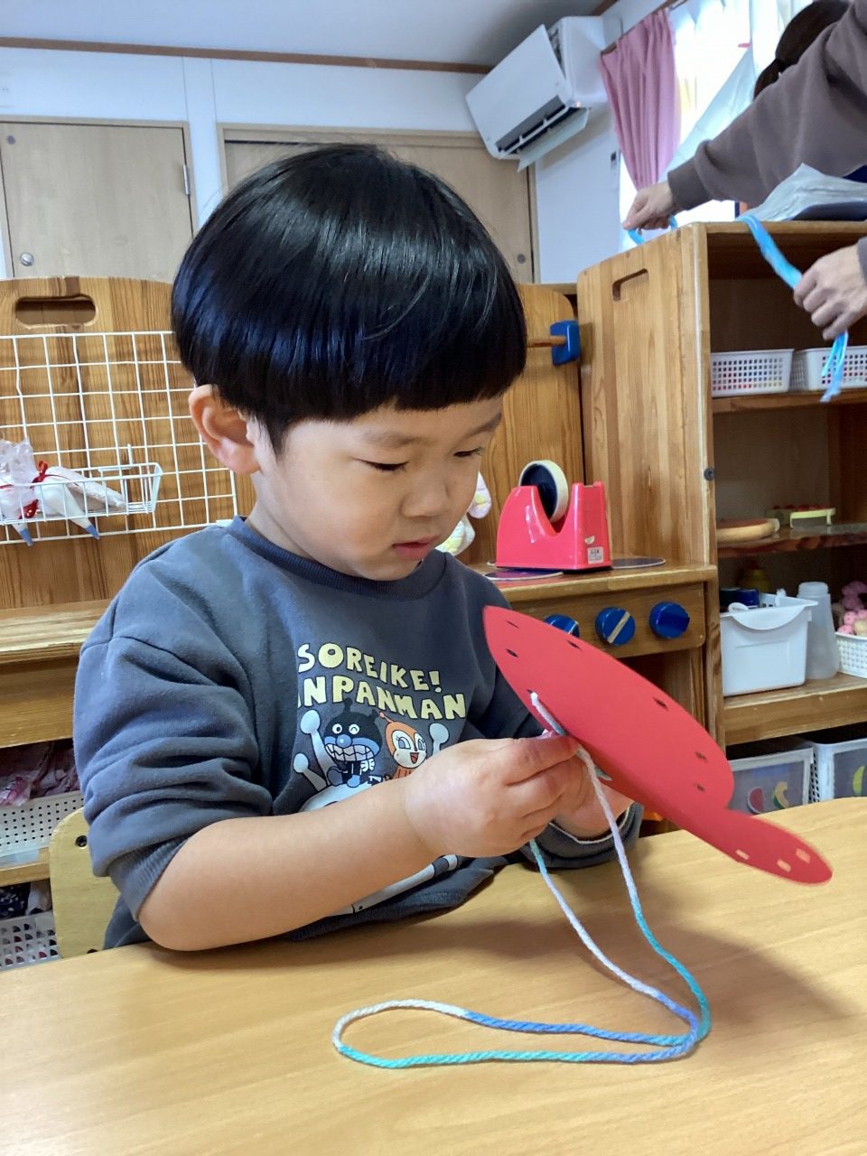 「もう一回!」大盛り上がりです。雪だるまの製作や粘土遊び、指先を上手に使っていますね。