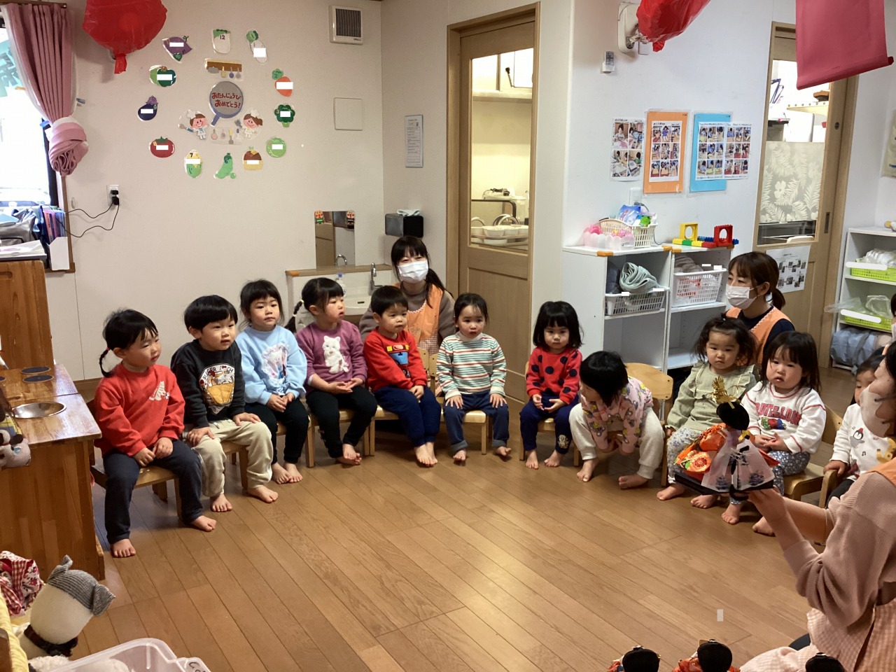 「おには~そと~!ふくは~うち~!」大きなかけ声が聞こえてきましたよ。今日は節分。みんなで豆まきです。