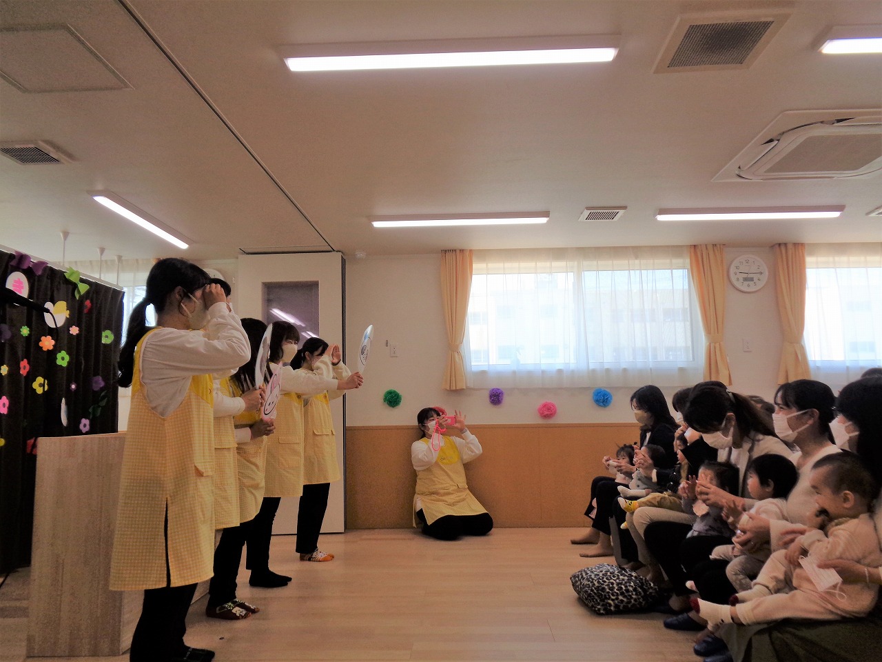 にじいろ保育園相生は、2022年4月1日に開園致しました。産休明けから、就学前の子どもたち75名をお預かりする認可保育園です。すぐ隣には相生山緑地があり、広大な自然が広がっています。他にもたくさんの公園に囲まれており、園周辺には子どもたちがたくさんの自然に触れられる素晴らしい環境が整っています。また、園内でも“自然を呼び込む”活動に取り組んでおり、園庭の手作り花壇や畑にはたくさんの昆虫や生き物があそびに来ます。春先には園の玄関にツバメが巣を作るほど、自然に恵まれています。