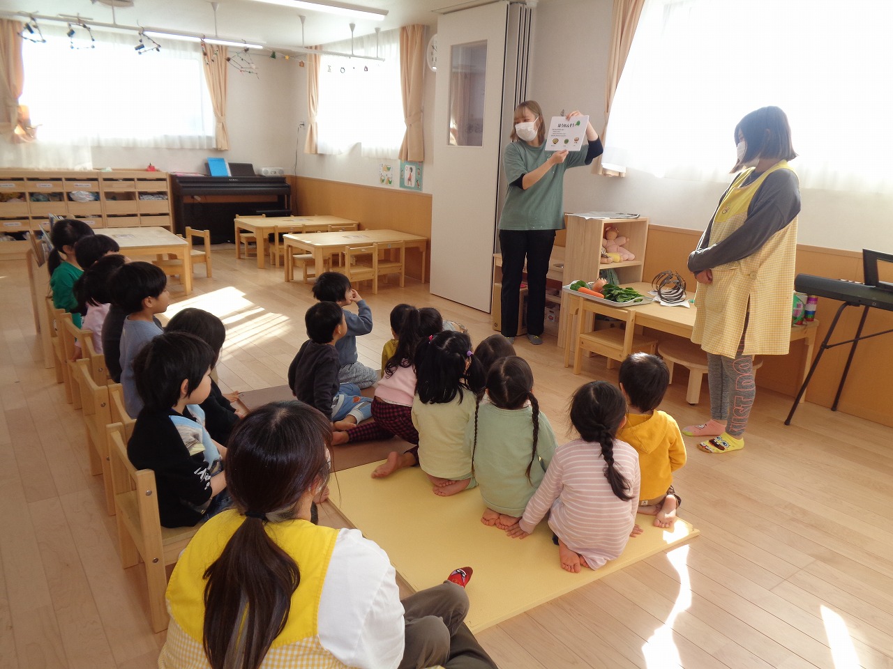 自然を愛し、心身共に健やかな子どもの育ちを目標にし、子どもたちがのびやかに育ち、大きな大地の芽と育っていけるよう職員一同、日々子どもたちと向き合っています。また、保護者の皆様とも協力をし、一つの仲間となり、子どもたちの育ちを共に共感し見守っていきたいと思います。ライクキッズの保育方針でもある「みとめ愛 みつめ愛 ひびき愛」の気持ちを大切にし、子どもたち一人ひとりの個性を伸ばしながら"生きる力"を育て、陽だまりのようなあたたかい保育園作りに励んでいます。