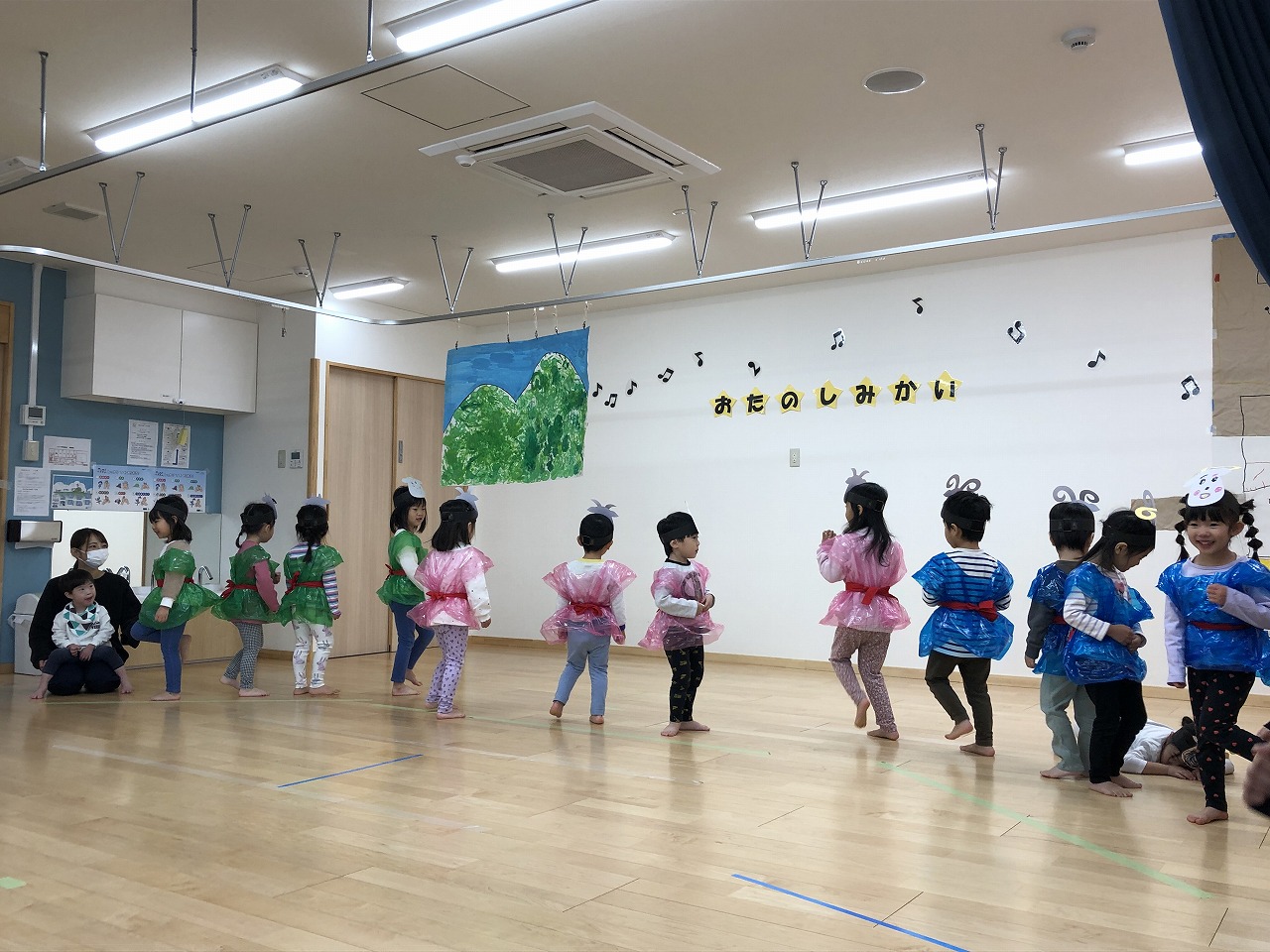 木のぬくもりを大切にした保育環境の中で、ふれあい遊びや好きな遊びを十分に行うことで心の安定をはかり、気候の良い日は近隣の自然豊かな公園にも出かけて四季の移ろいを肌で感じながら、友だちと一緒だからできる喜びや、様々な経験を積んで育ってほしいと願っております。