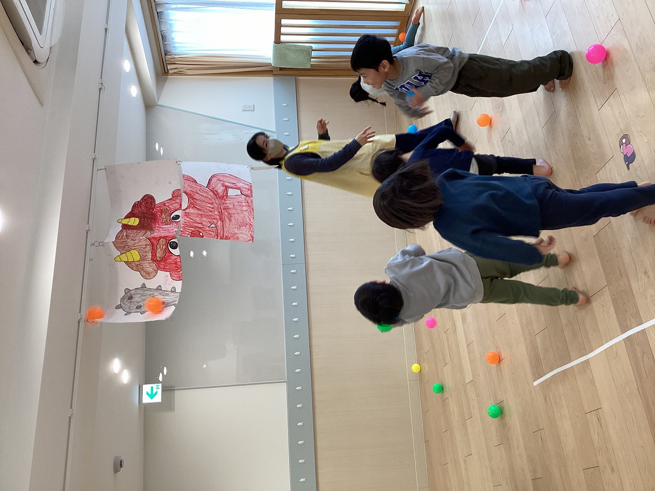 園内は木のぬくもりを感じることができ暖かい雰囲気の中、元気いっぱい遊ぶ子どもたちの声が響いています。
