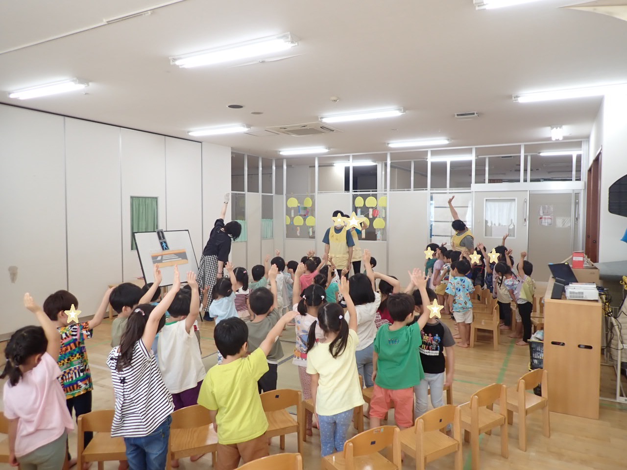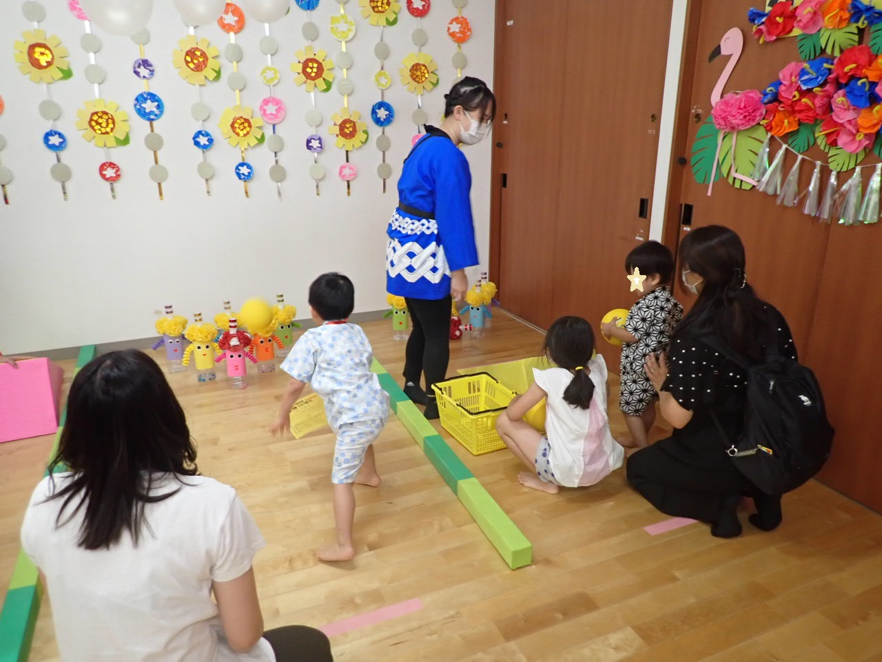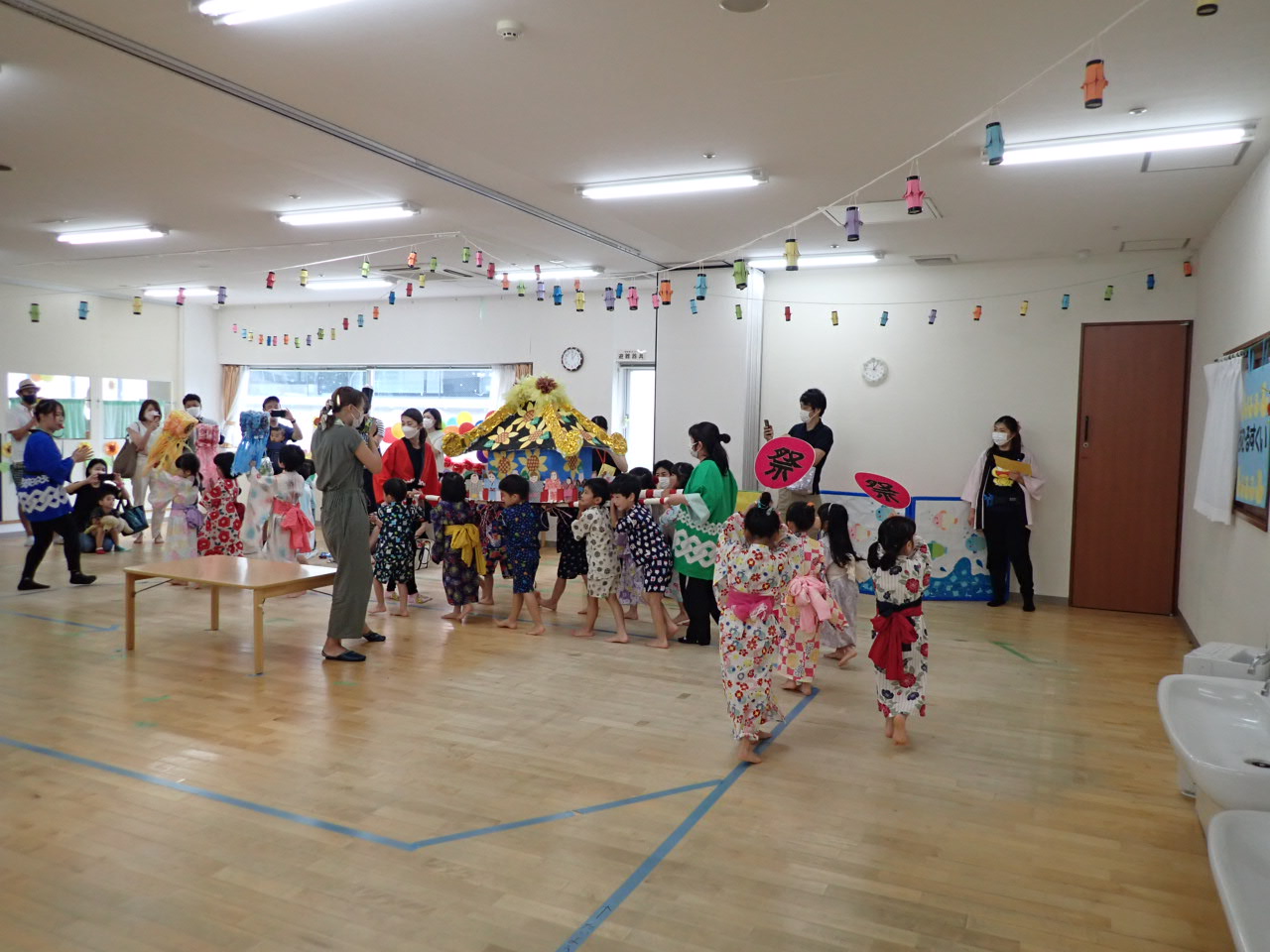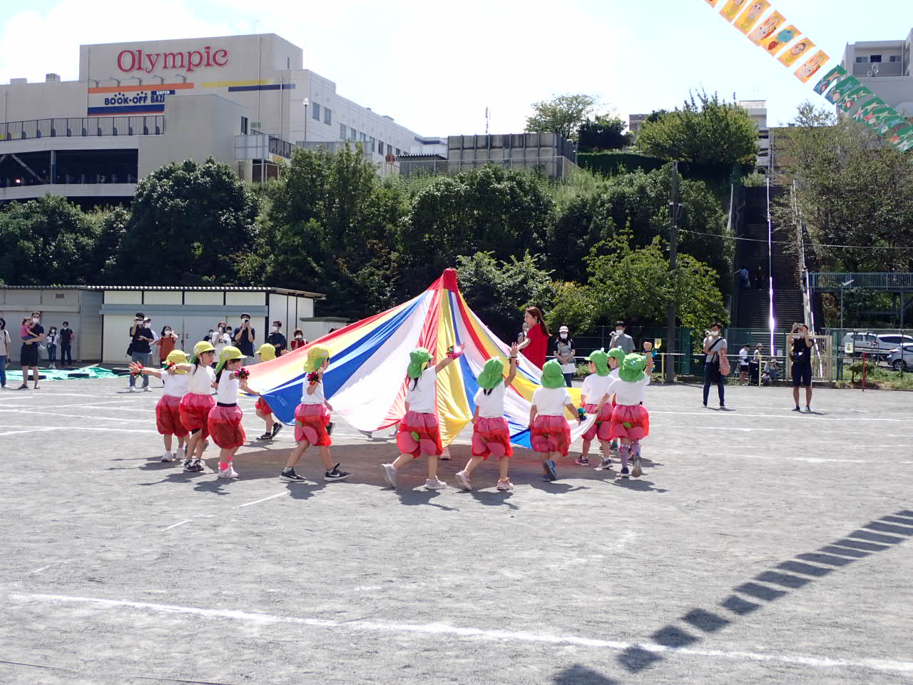天気の良い日には、近隣の品濃町公園、上品濃公園、駅周辺のロータリーや遠方の公園にも散歩に行き、その先々で子どもたちは四季の移ろいや、自然との触れ合いを体験しています。また、屋上ではプランターで野菜や草花を育てて、夏にはプール遊び・水遊びを楽しく行っています。年間の活動としては、運動遊び、リズム遊びを取り入れています。