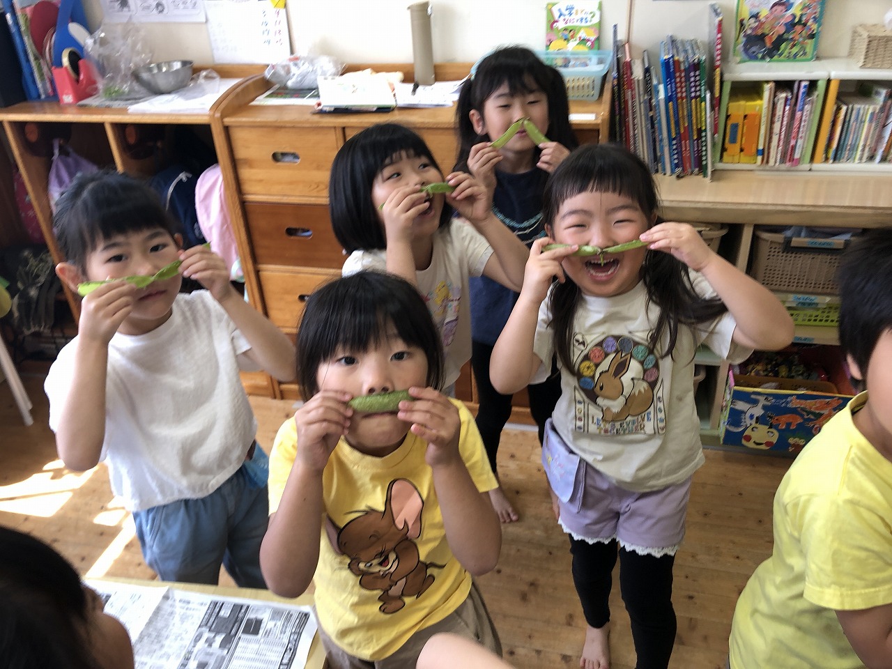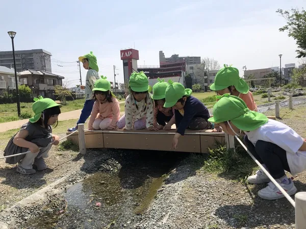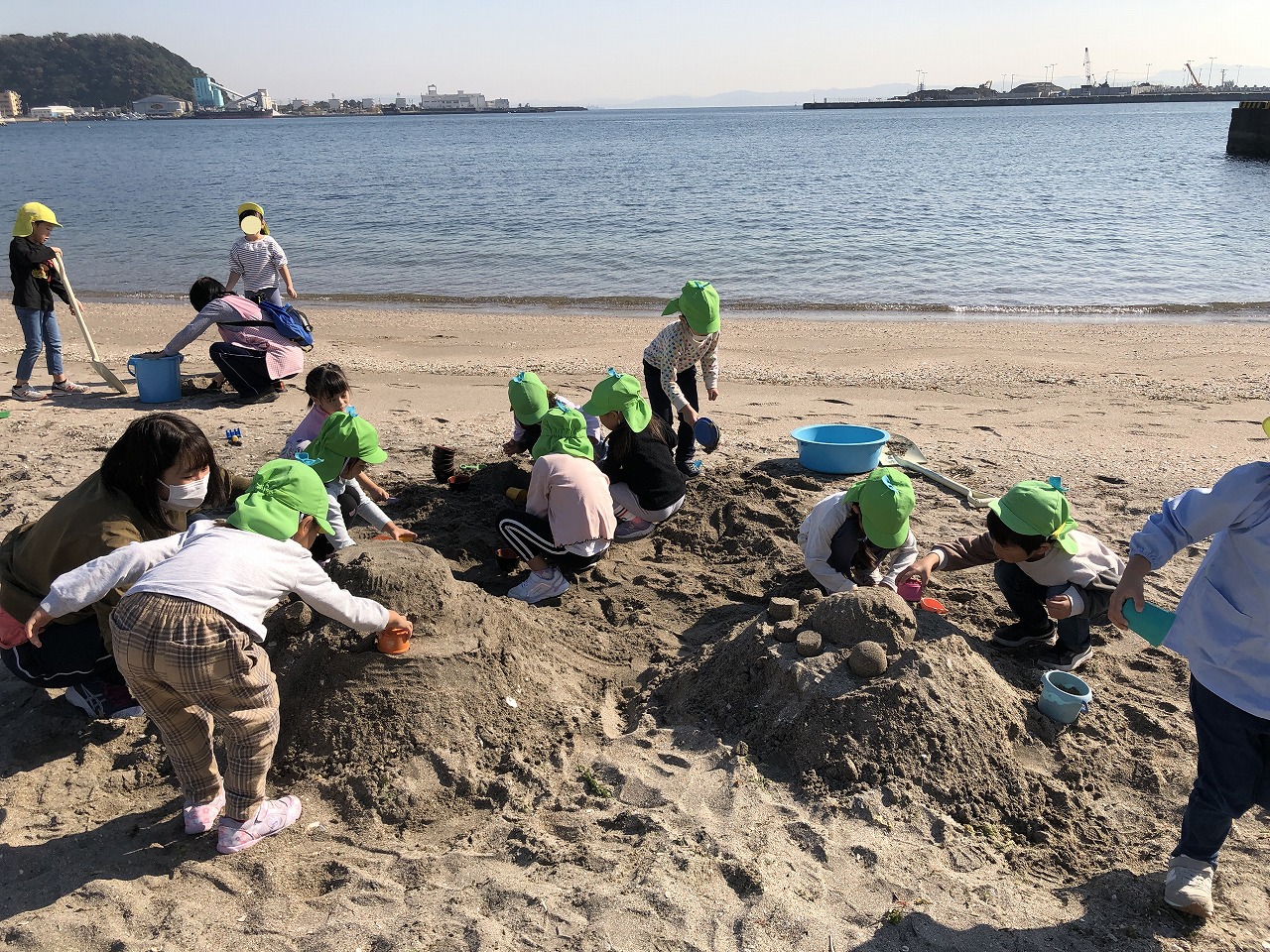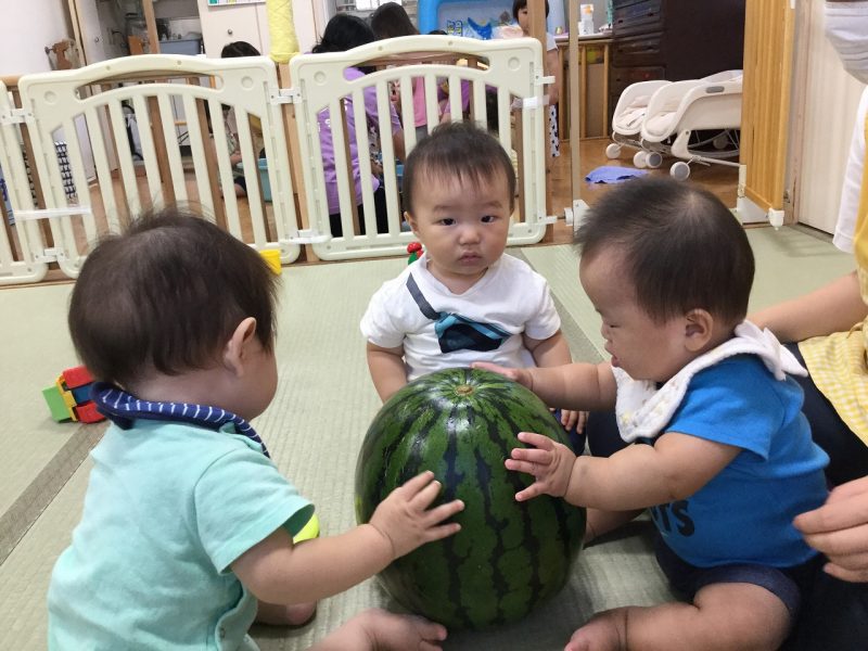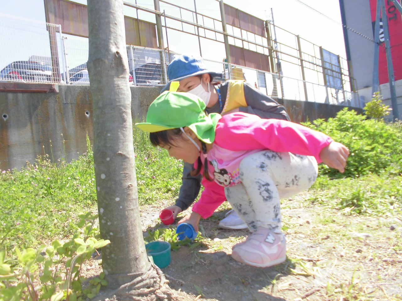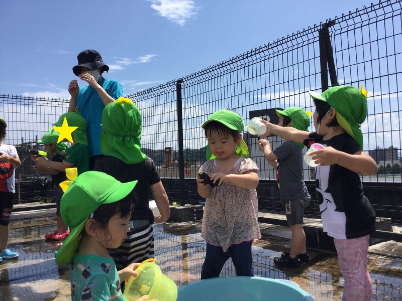 園庭のない保育園ですが、近所の公園へ出かけたり、捕まえた昆虫を育てたり、野菜作りを楽しんだりといろいろと工夫をしています。また、海が近いので大きくなると砂浜や磯にも出かけます。リトミックや和太鼓も定期的に取り入れています。