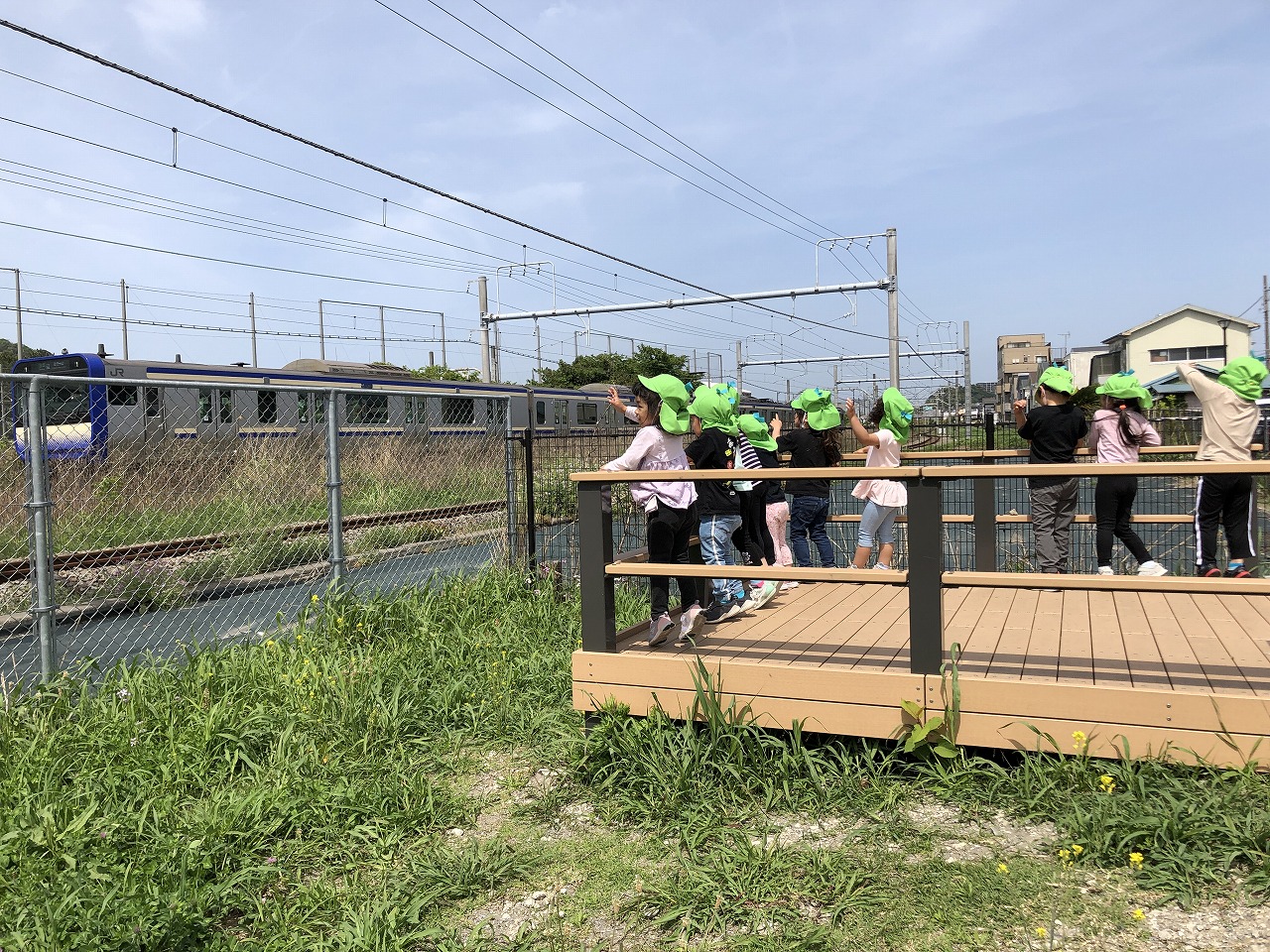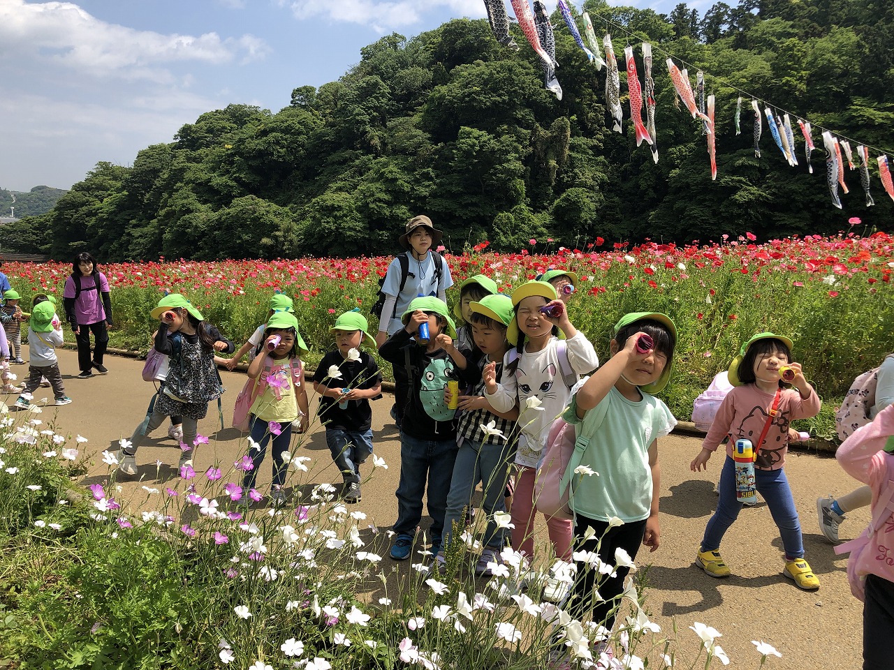 にじいろ保育園久里浜コスモスは、京急久里浜駅から徒歩2分程の商店街の中のビルの4階にあります。商店街では、5月は沢山のこいのぼり、7月は七夕、10月はハロウィン、12月はイルミネーションが飾られ、子どもたちも1年を通し借景を楽しんでいます。