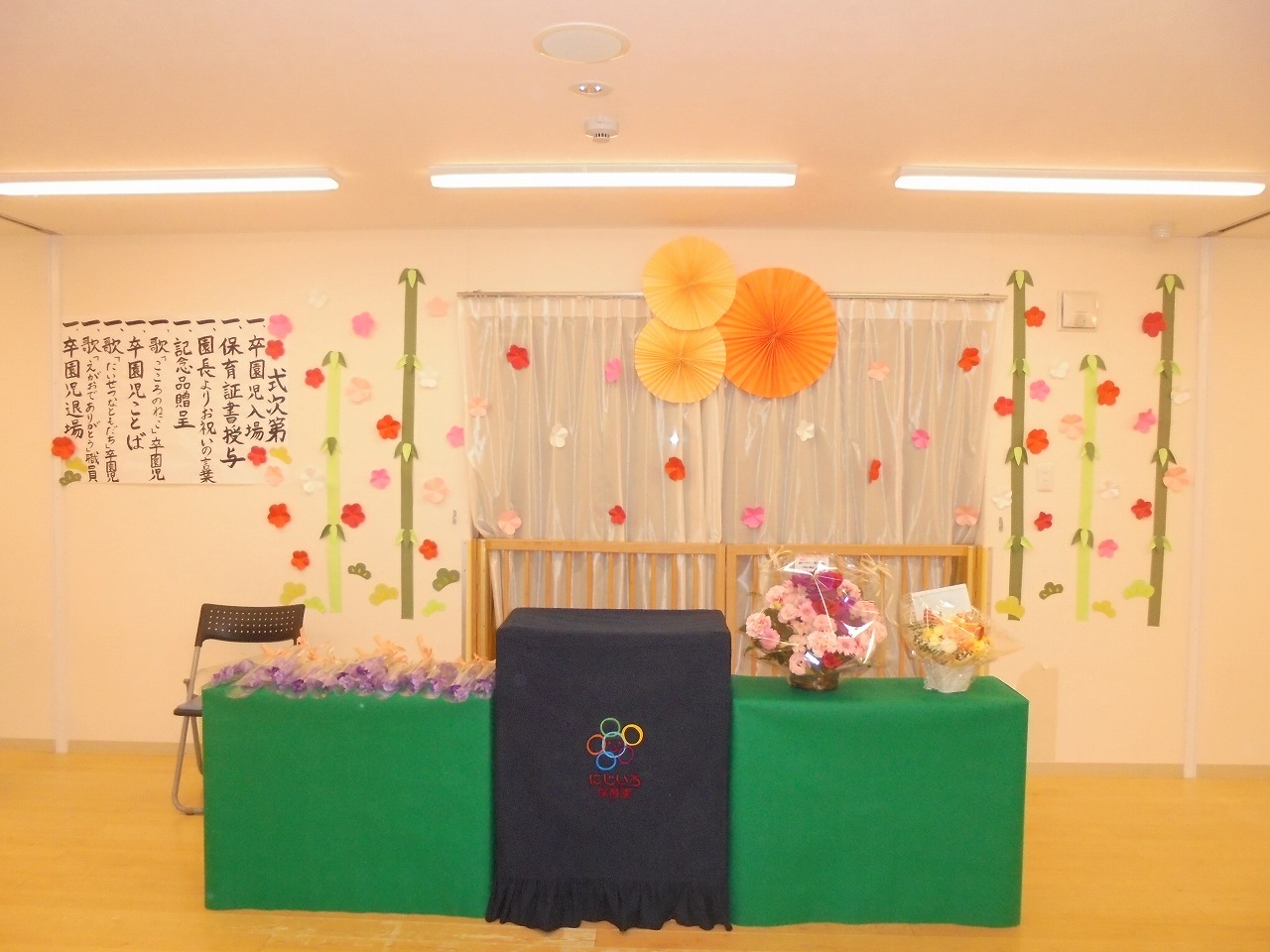 保育室は木のぬくもりを感じられ、その空間の中で一人ひとりが子どもらしく生活を送れる環境を築いていきたいと考えています。にじいろ保育園の考えのひとつ「陽だまりのような保育園」を大切に、お子さまも保護者様も職員にとっても温かい雰囲気の中で過ごせる安心できる保育園でありたいと考え日々保育しています。