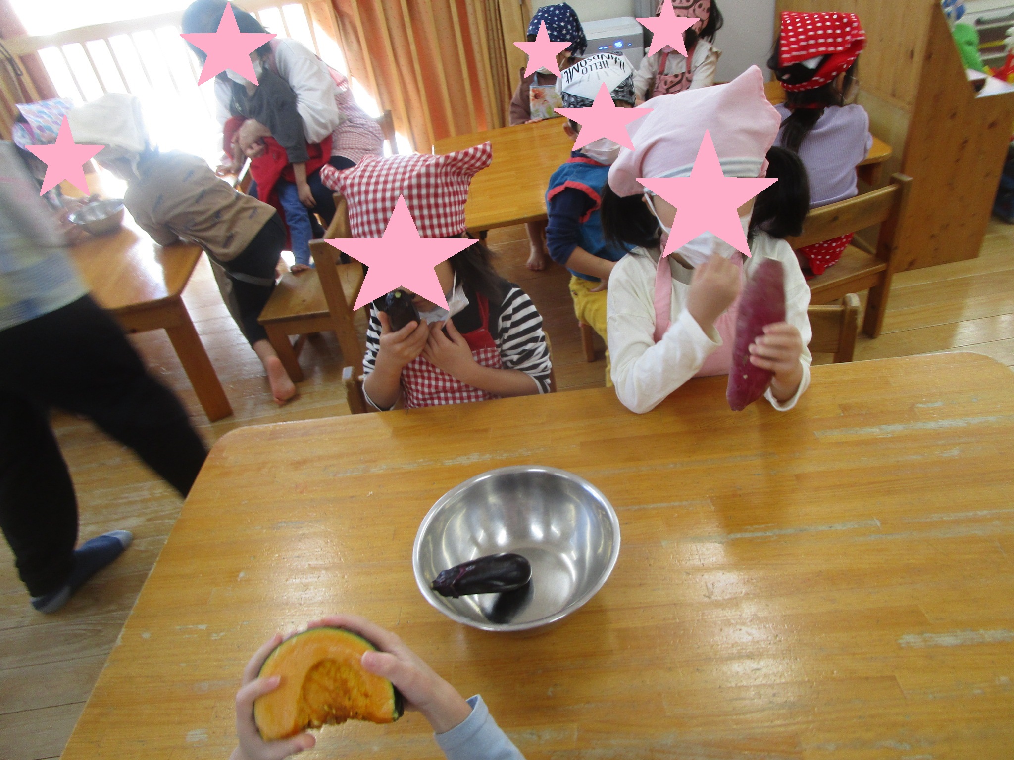 食育活動としては、園庭の端にさつまいもを植え、日々の遊びの中でも成長を感じることができます。そのほかプランターを使って各クラス野菜の栽培を行っています。苦手な野菜も日々の水やりと生長の観察により「食べてみる」意欲に繋げられています。