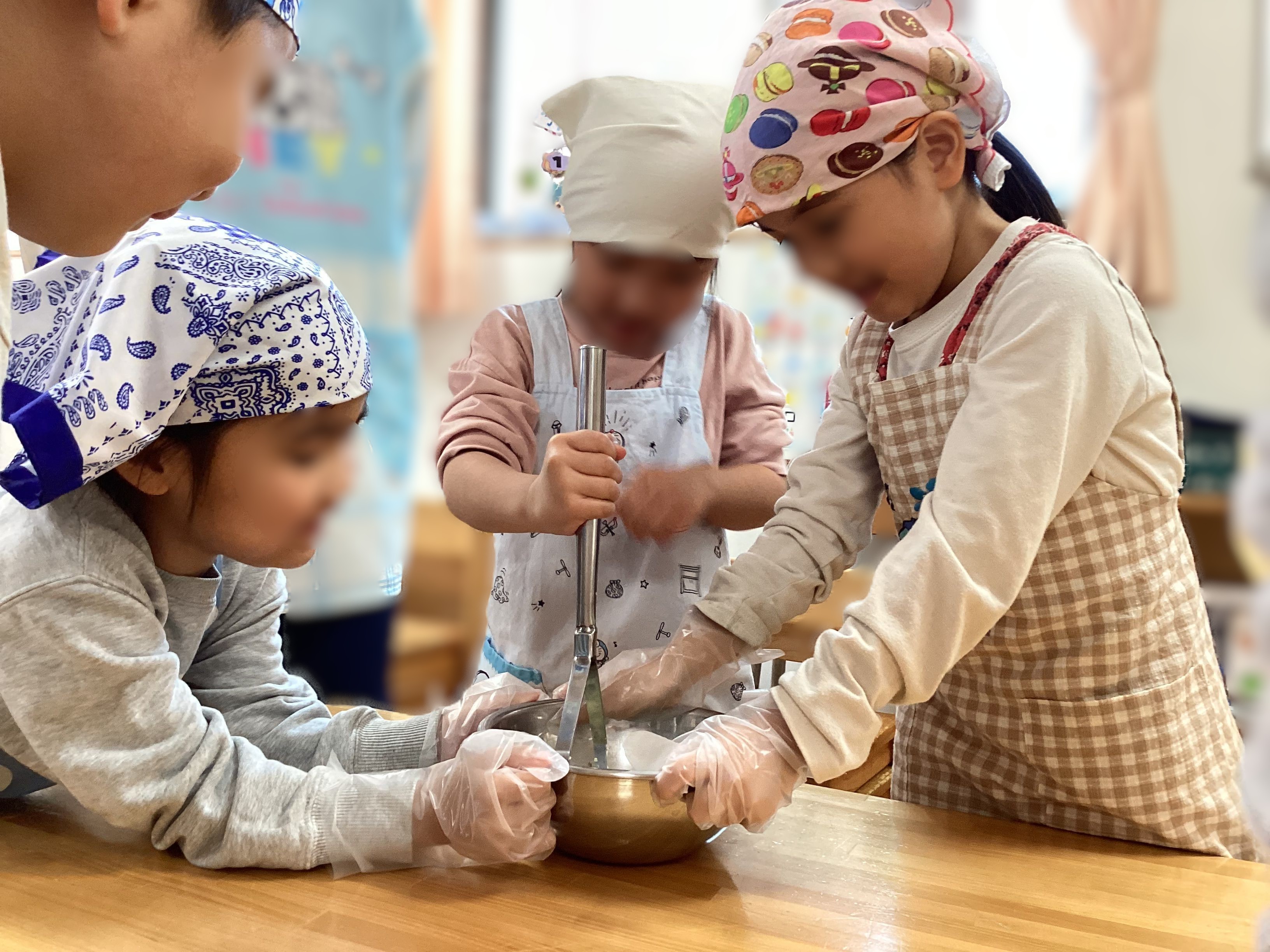 家庭的で陽だまりのような温かい空間(いえ)つくりを目標に子どもたちがお家で遊んでいるようなゆったりとできる環境や異年齢保育を取り入れることで子どもたちの間に自然に思いやりやいたわりの心が育まれています。子どもの「やりたい」「やってみたい」という自ら取り組もうとする意欲と根気を育て、子どもたちが日々過ごす中で起こり得る様々なTrial&Errorの経験を保育士は上手に応援しています。