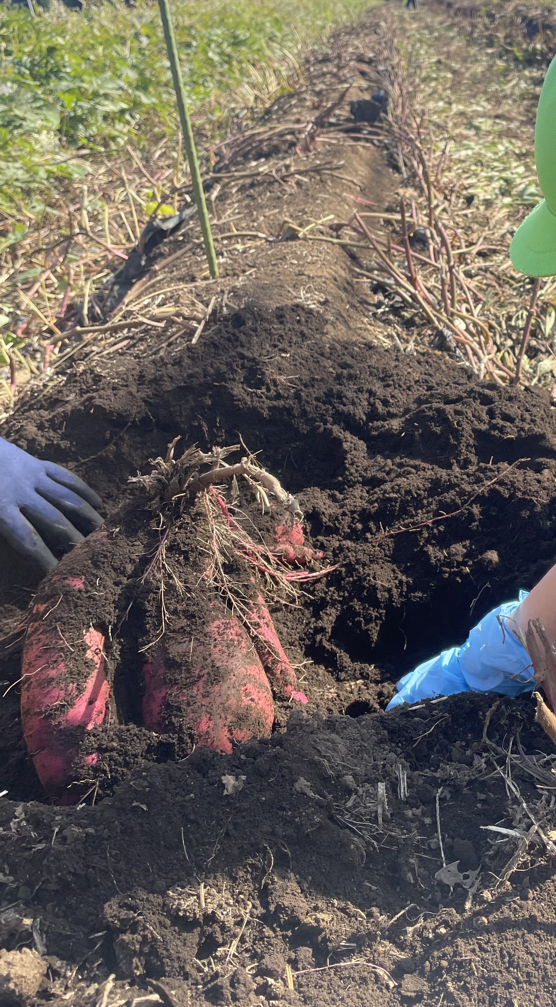 また、園の側には大きな畑があり、いもほり体験をさせていただいたり、野菜の観察をさせていただいたりし、食材への興味を引き出せるような体験も取り入れています。