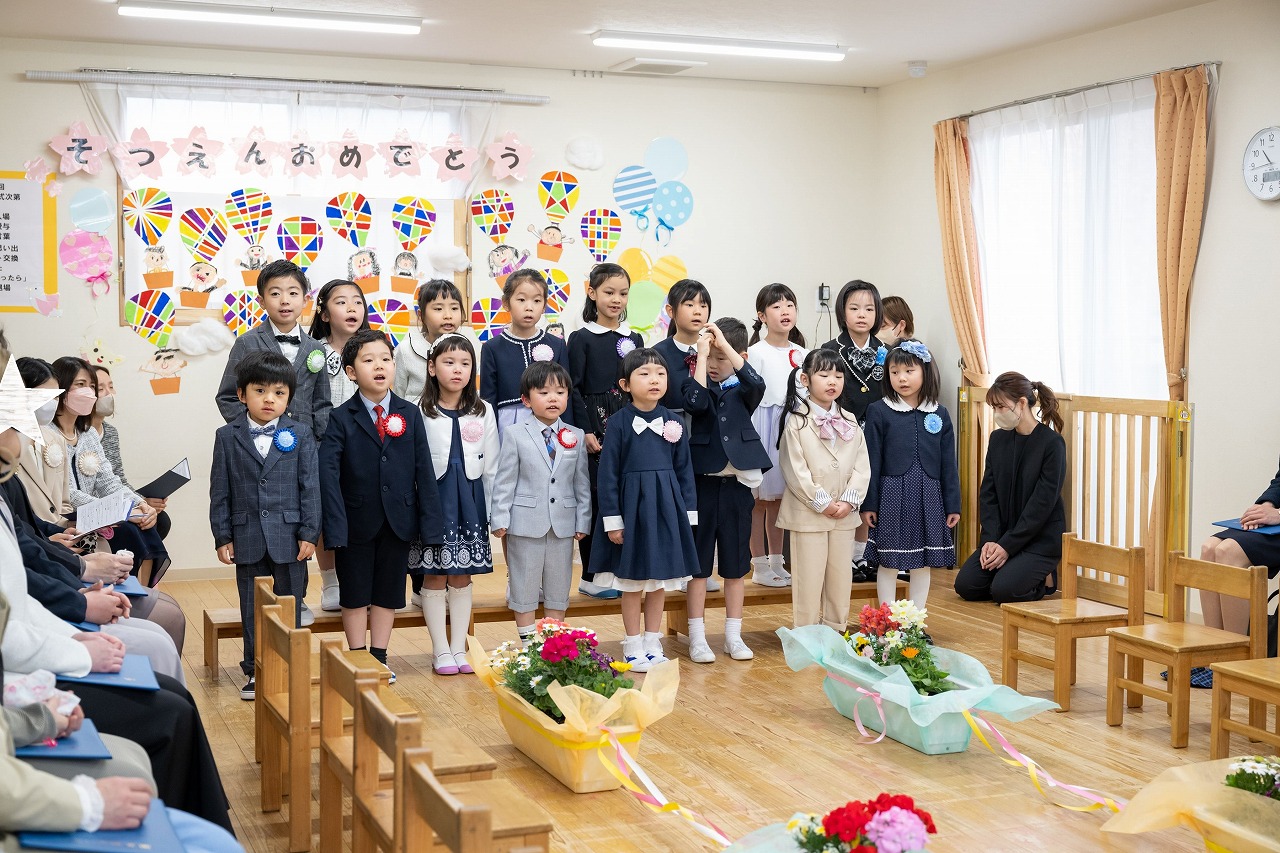 『みとめ愛、みつめ愛、ひびき愛』の保育方針をもとに、子どもたち一人ひとりに寄り添い、伸び伸びと過ごせる環境を作り、子どもたちのやりたい気持ちを受け止め、日々温かい保育を心がけています。充実した魅力のある室内環境を整え、子どもの成長や興味に合った玩具を用意し、おままごと、構成遊び、机上の遊び、絵本等のコーナーを設定し、じっくりと遊び込める環境を大切にしています。また、食に関しての興味関心を高めていけるように、栽培活動、食育、クッキングを行ったり、しなやかな身体づくりができるように0歳児から5歳児までリズム運動を保育の中に取り入れています。子どもたちの好きなことや楽しいことをたくさん発見できるような保育を行い、職員一同力を合わせてお子様の成長を見守り、保護者の方と共にお子様の成長を共有していきたいと思います。