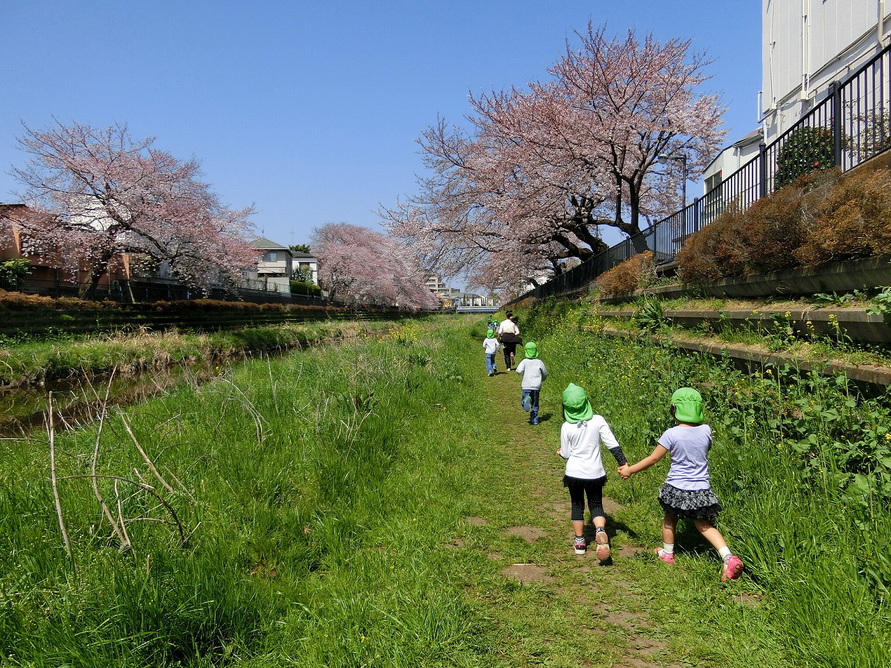 甲州街道沿いにある2階建ての広い園舎は木の温もりや優しさが感じられる作りとなっています。周辺には、野川があり四季折々の自然を感じながら、天気の良い日には、子ども達のお散歩が日課となっています。