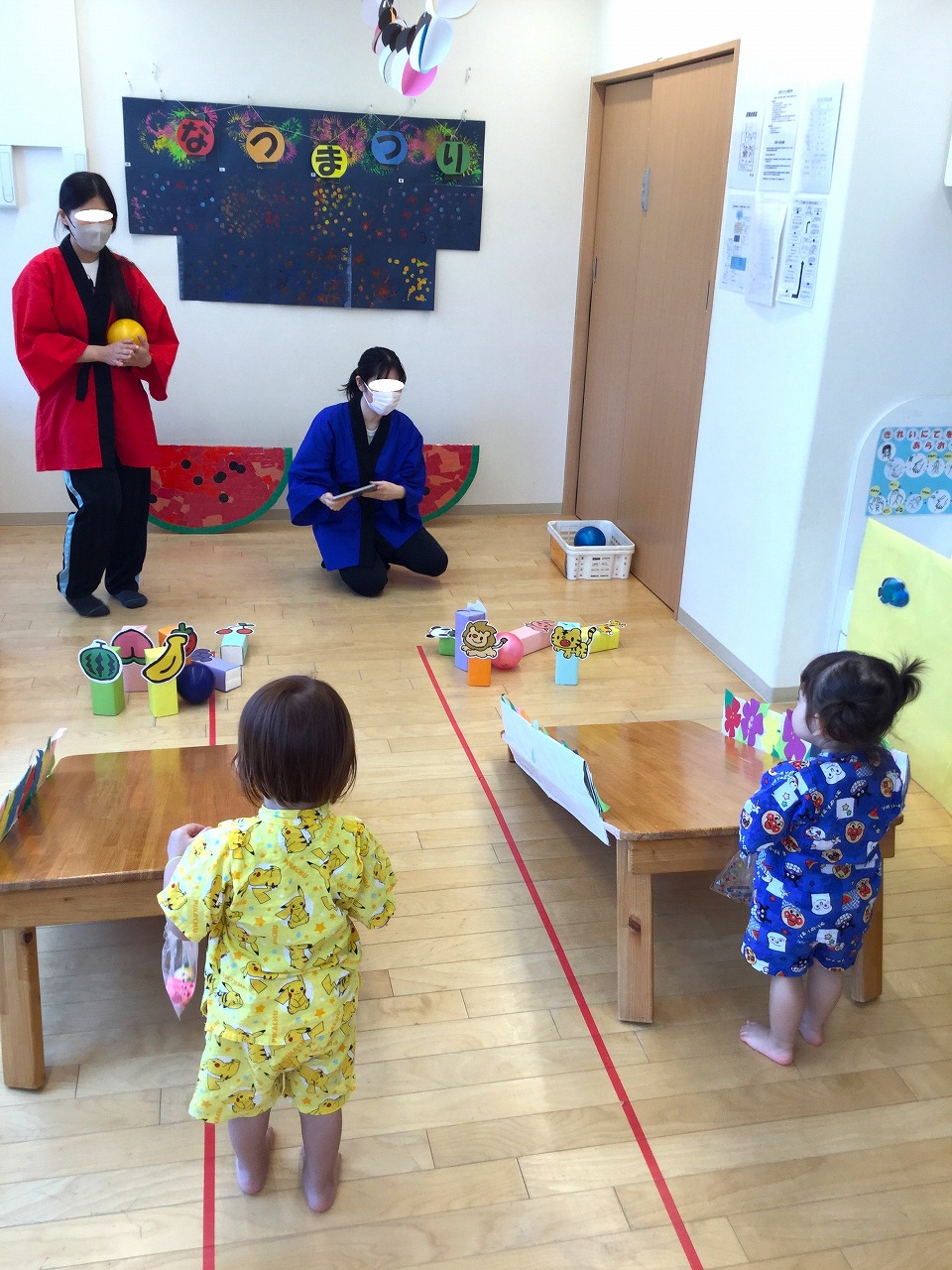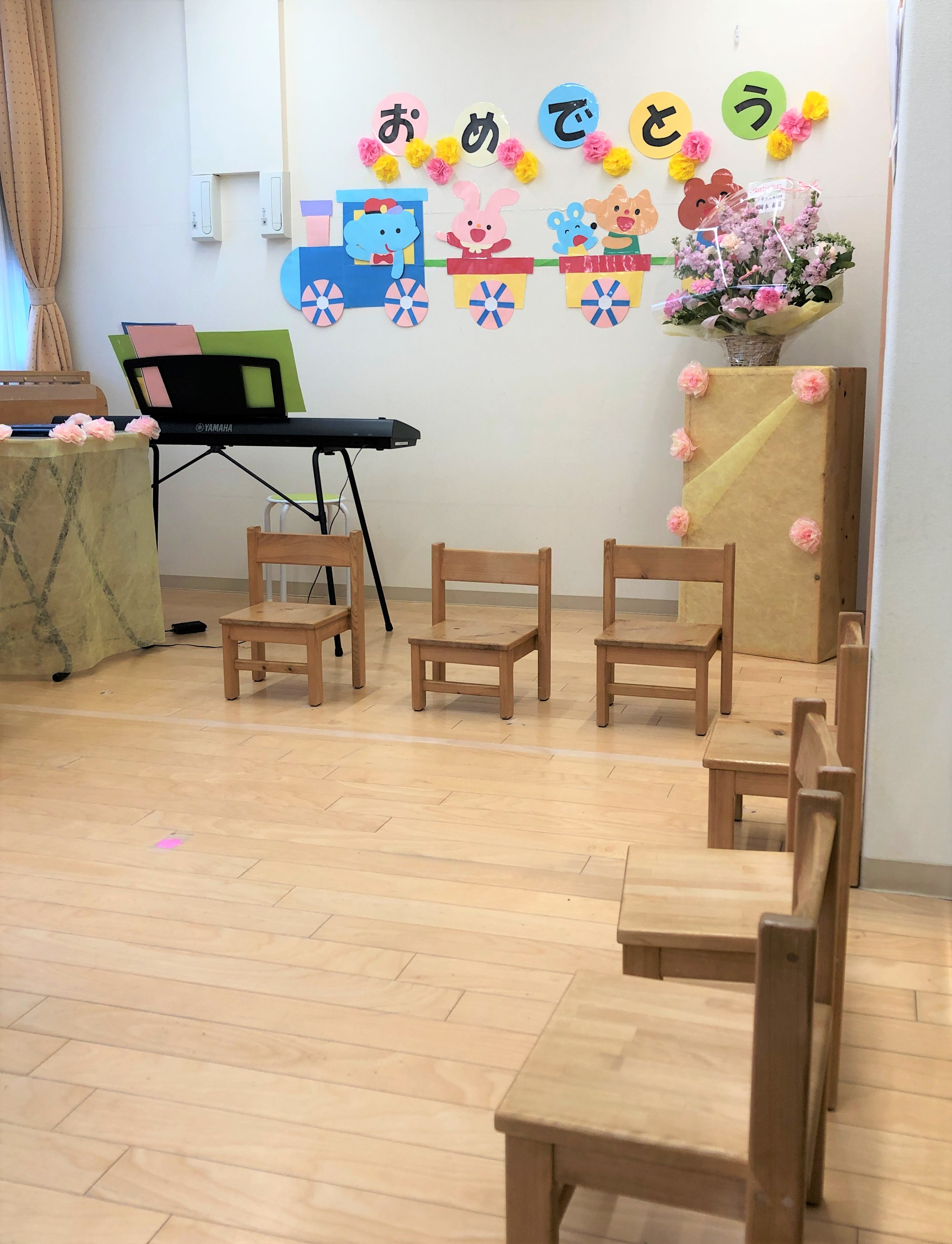 保育室は、大きな窓ガラスから日の光が差し込むので、天気がいい日はとても明るいです。