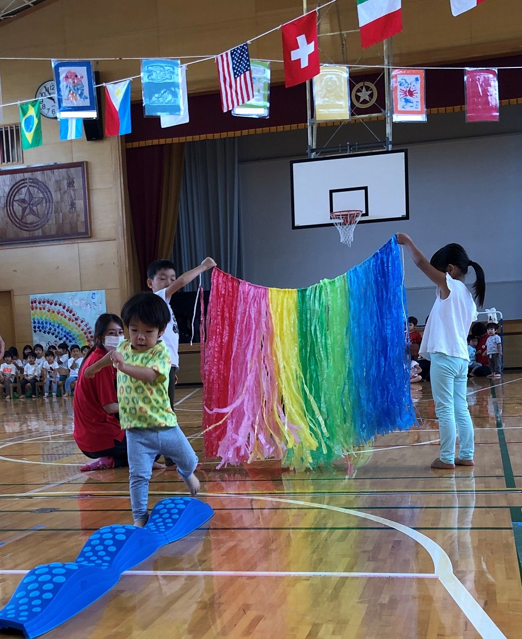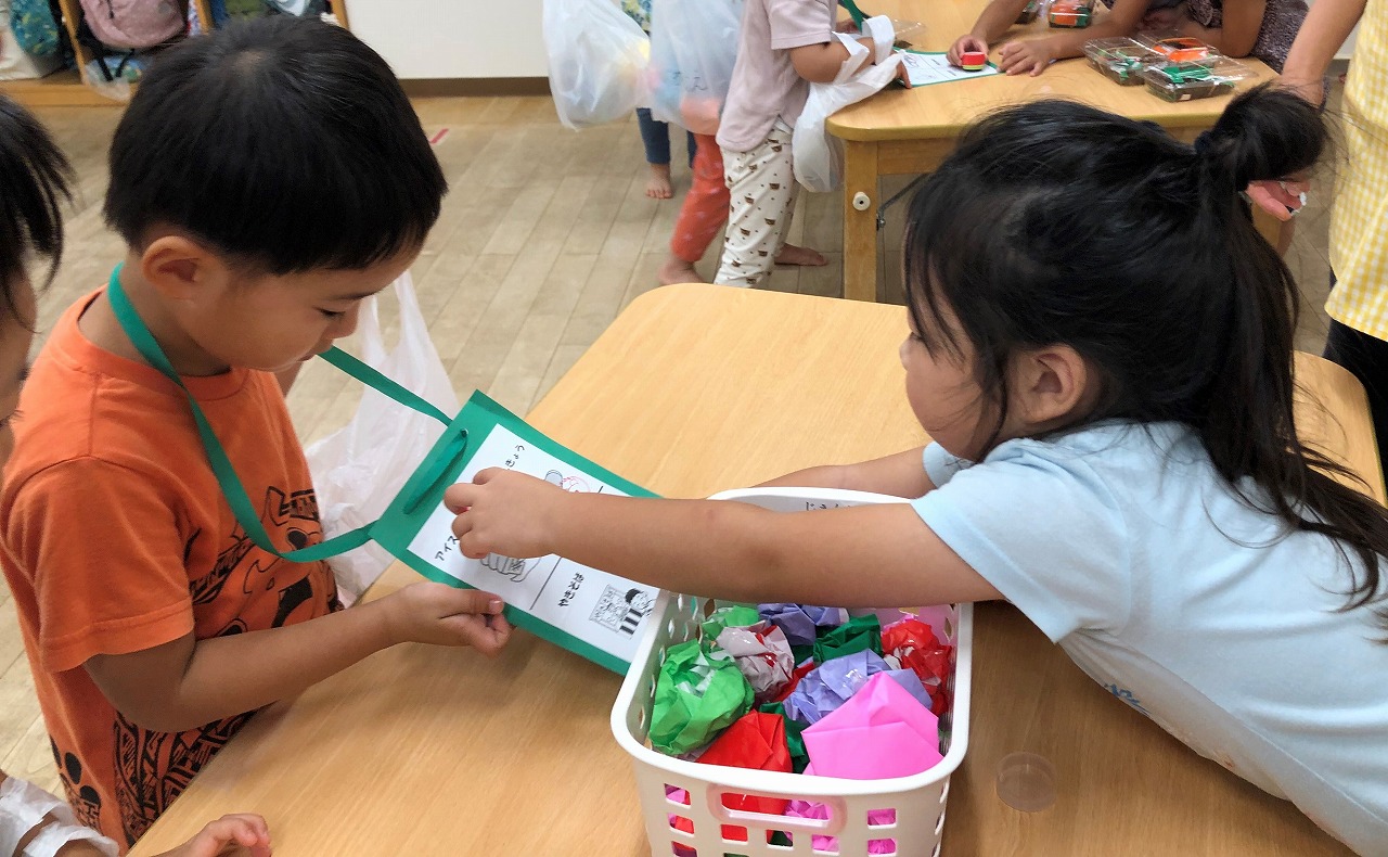幼児組のお兄さんお姉さんは小さなお友だちが困っていたら、自然と手を差し伸べ、小さなお友だちは年上のお友だちに憧れと親しみを持って関わっています。多くのことを自然に学んでいる姿はまるで、大きな家族のような温かみを感じます。