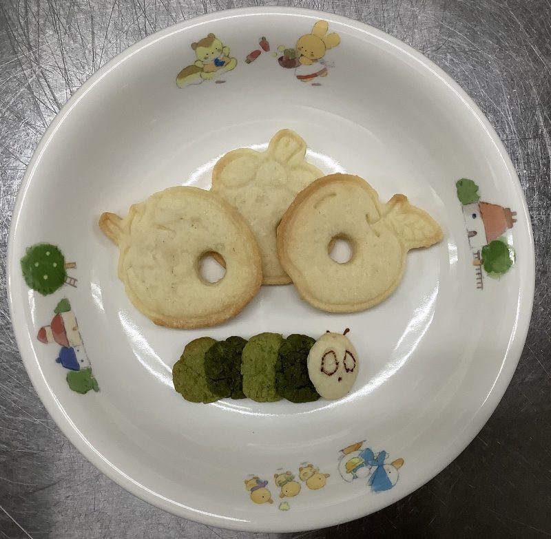 「食育」では様々な食材に触れ、匂いを確かめ、調理のお手伝いをする事で食への興味を持ち、嫌いなものも一から育てたり、作ってみたりする事で食べる事に挑戦しようとする気持ちを育んでいます。