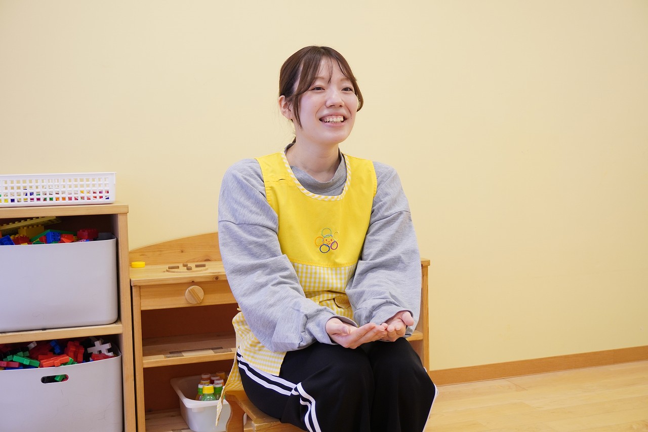 「子どもたちの成長を感じた時に嬉しくなりますし、保育士をしていて本当に良かったと感じます。昨日できなかったことができるようになったりと、子どもの成長には驚きの毎日です。」