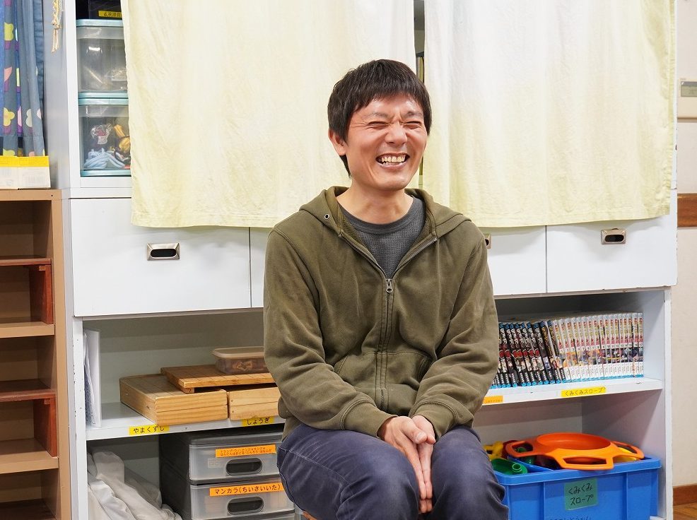 その発見が、船橋施設長の人生の舵を大きく切ることになります。子どもに寄り添う仕事がしたいと考えた時、真っ先に思い浮かんだのは「遊びの中で関わりたい」という強い想いでした。