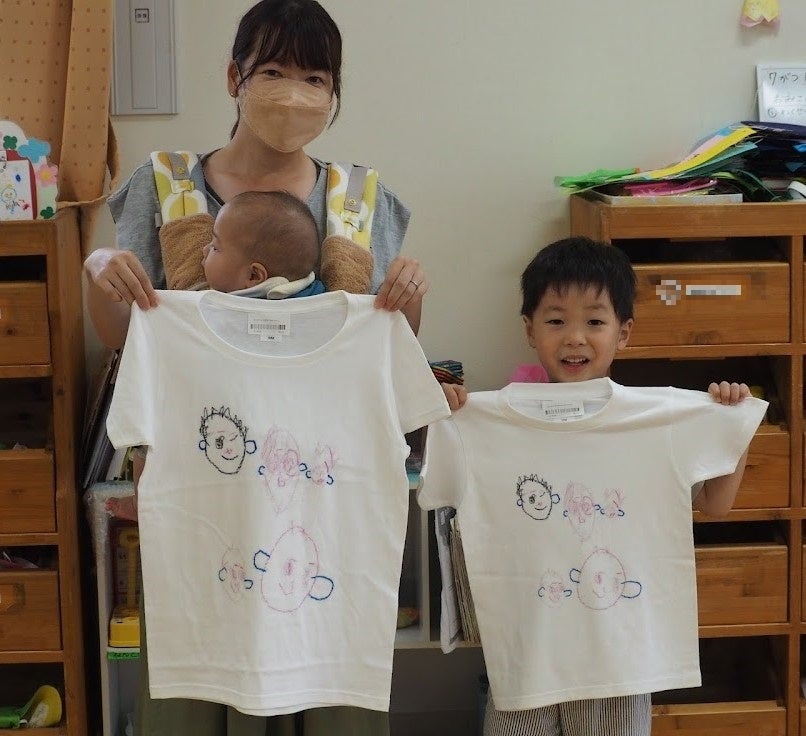 保育施設を運営するライクキッズ株式会社の認可保育園で株式会社プラザクリエイト(本社:東京都中央区、代表取締役社長:新谷 隼人、以下プラザクリエイト)によるワークショップ「ニコニコT」を実施、子どもたちが描いた家族の似顔絵がTシャツになりました。
