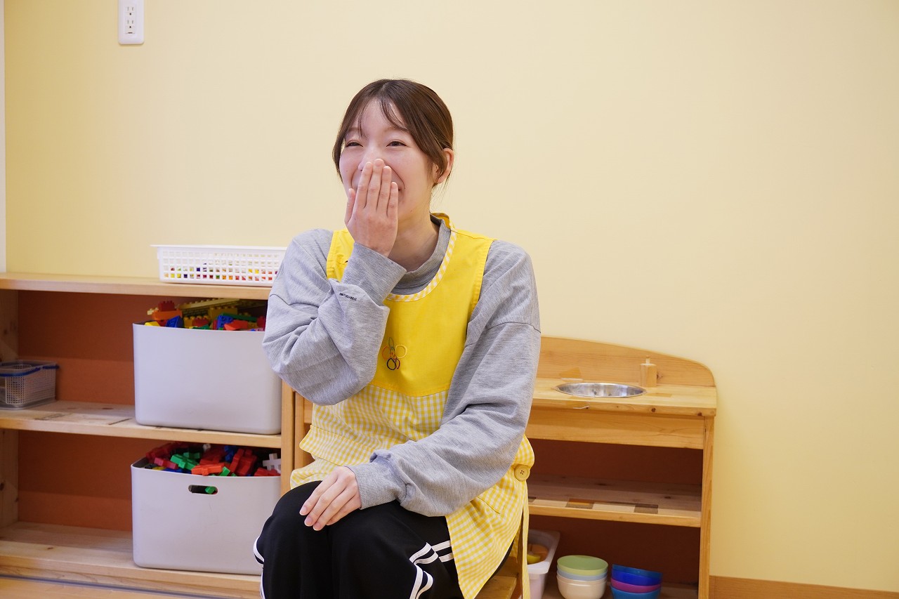 「乳児クラスを担当していた時は、少しずつ『ありがとう』が言えるようになったり、意味がわかってくるという段階でした。その中でも、私がしたほんの小さなこと、例えば『固いブロックを外した』『ズボンの向きを直した』だけでも、『ありがとう』と言ってくれます。意味を持った『ありがとう』を言えるようになった子どもたちからの『ありがとう』は、すごく嬉しいものがあります。」