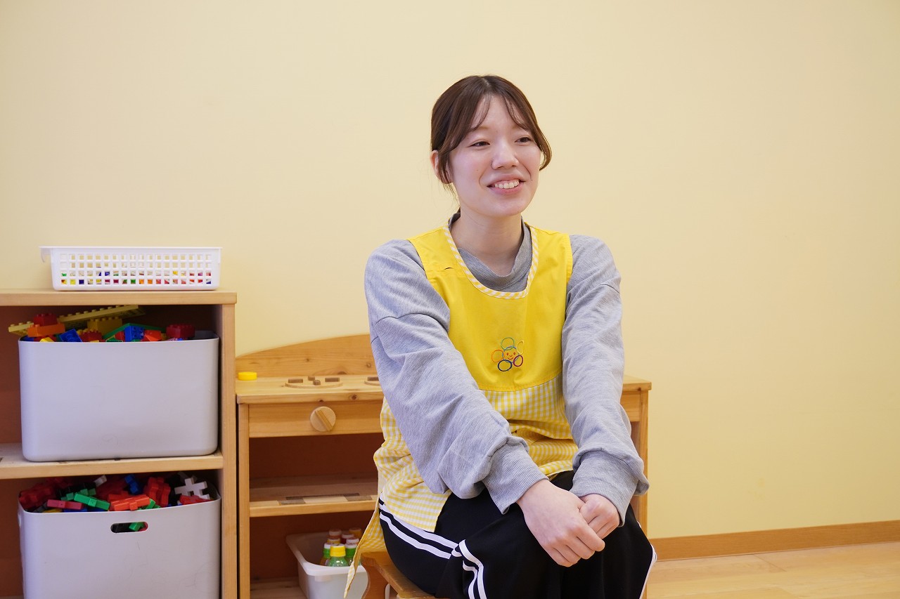 「子どもたちの成長を感じた時に嬉しくなりますし、保育士をしていて本当に良かったと感じます。昨日できなかったことができるようになったりと、子どもの成長には驚きの毎日です。」